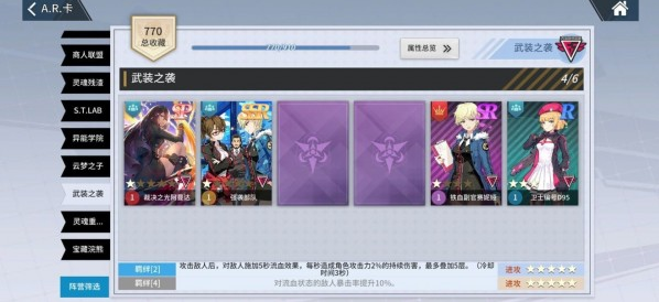 由此可以看出搞一套适合自己打法的阵营基本卡组十分重要,一般配卡是421,4张一个阵营,2张一个阵营,一张单卡,或者2221组合配卡,由于ar卡对于我们所选的4个角色基本通用,所以也没有哪个哪个角色的特别配卡,再没有凑齐卡组的时候可以根据羁绊或者自己的拥有的卡组看情况搭配。或者说精英卡池里up哪个阵营就抽哪种用哪种。