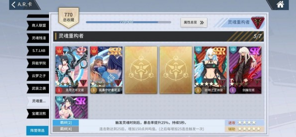 可以这么说如果你有一张好的主卡,主卡技能非常不错,你可以凑一套4羁绊的灵魂重构来配合你的主卡使用,主卡技能通过叠加共鸣值来释放,而灵魂重构的四羁绊能够持续增加共鸣值,只要你连击不断你就能一直叠加,提高主卡技能使用效率,这套卡在测试中也是非常强势的,不过有一点要注意,灵魂重构副卡只有两张,其余皆为主卡,如果你想要配套4张,只能将主卡改为副卡使用,这样的话你就会亏很多属性加成了,并且这套在打竞技场pvp对战的时候也并不是那么好用。