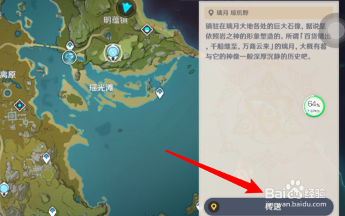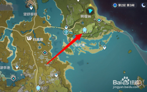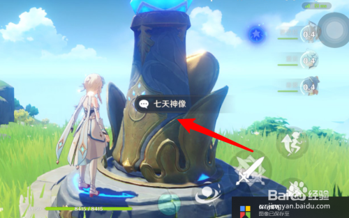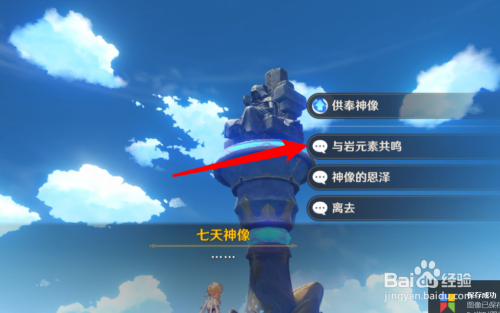 下一步在地图中点击一个岩属性的七天神像。