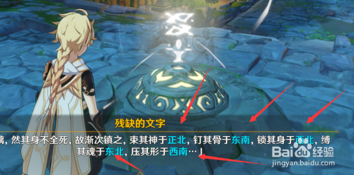 按照上北下南左西右东的辨别方法,先打开小地图最上方的岩尊像。