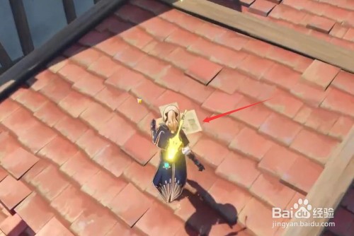 第三个海报位置在最左侧的红房子屋顶。