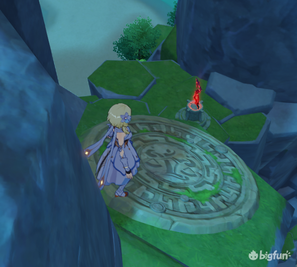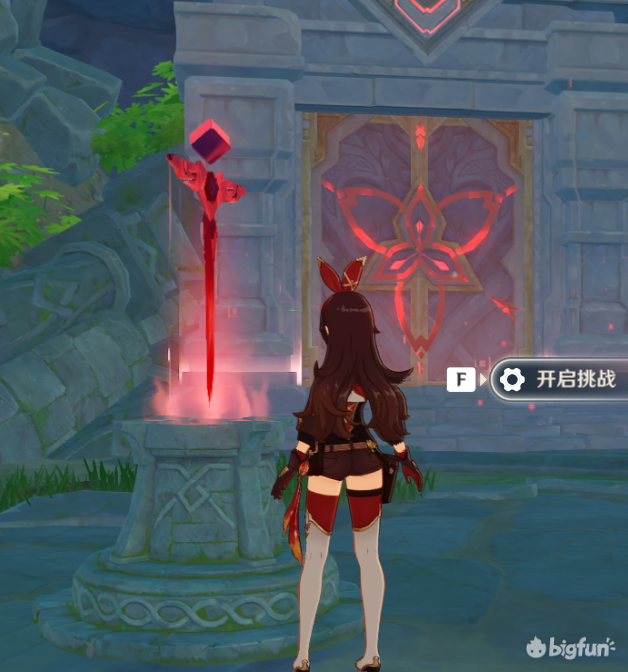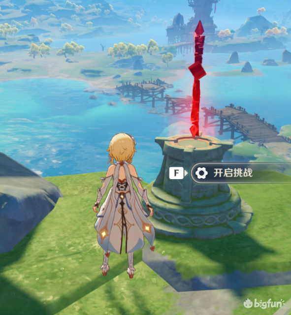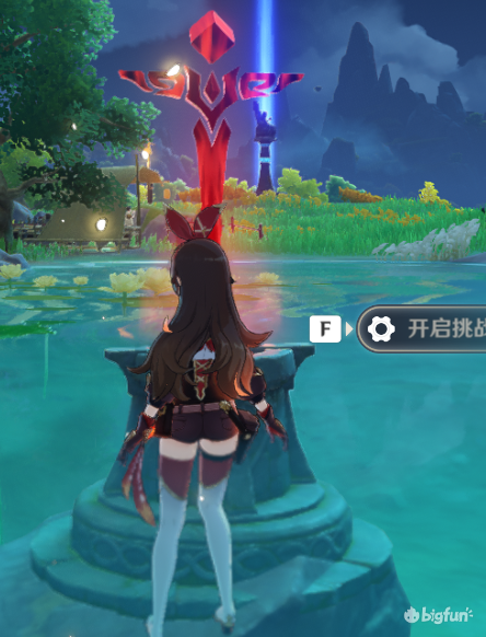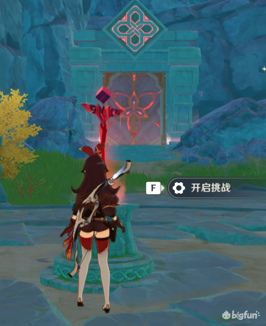 需要经过一步解谜,4只水史莱姆,非常简单,解谜就在挑战对面,看到图中机关就是了