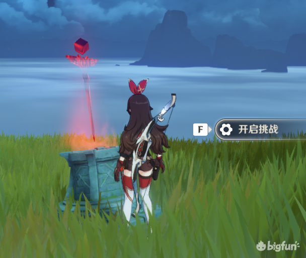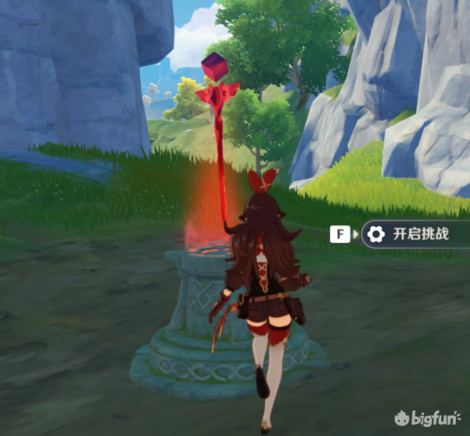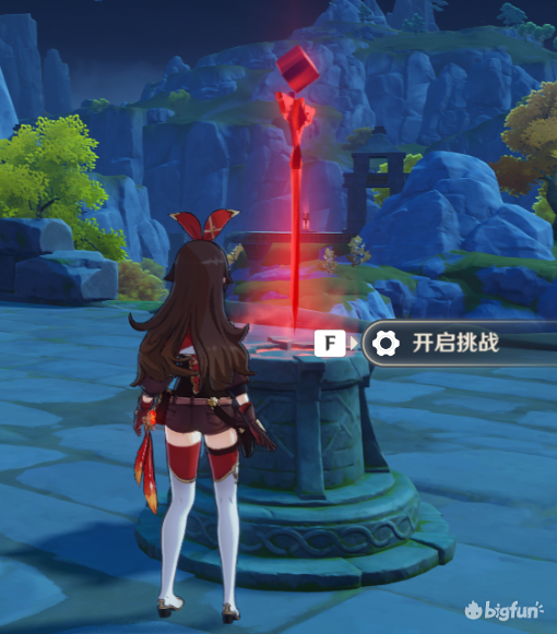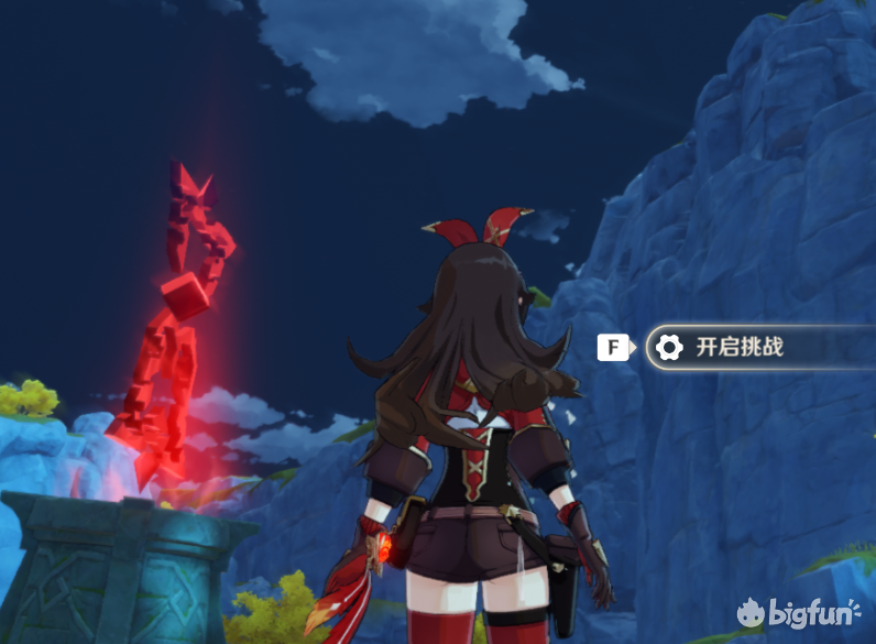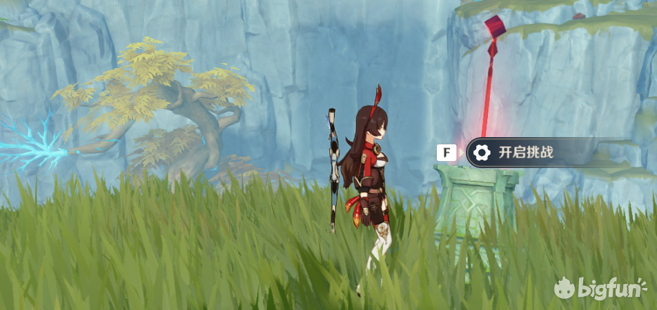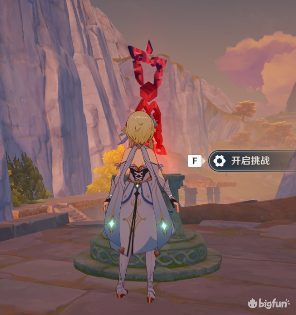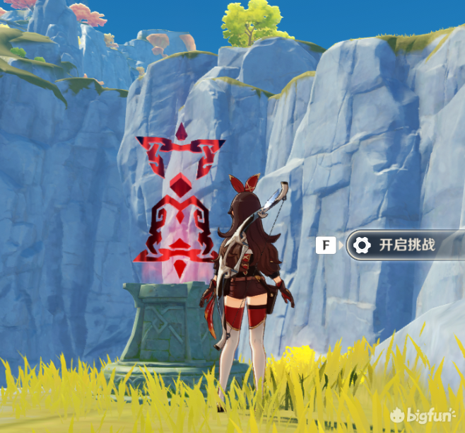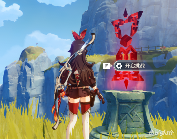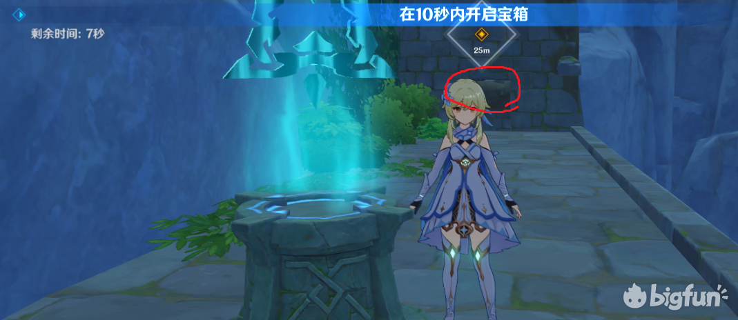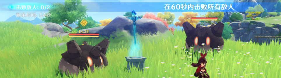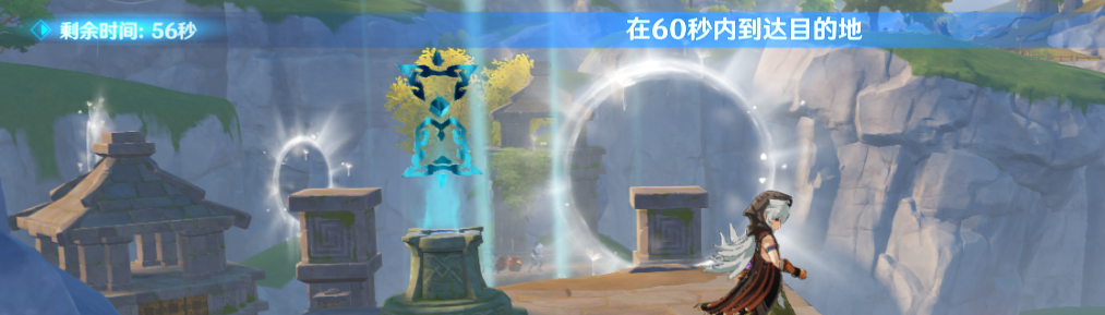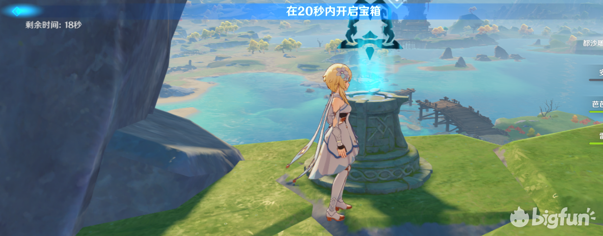 20秒内开启宝箱,其实就是爬个山,需要一定体力,体力不够完不成体力不够可以让岩主在这个机关提前放个石头,或者安柏放个娃娃再开启挑战