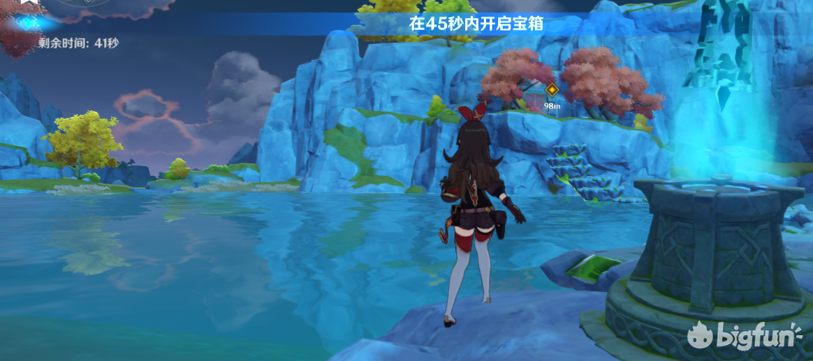 45秒开一个宝箱,水面上有一条路,多跳跳就可以了