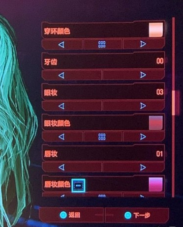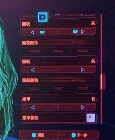在捏脸系统中,游戏加入了很多新鲜的元素令人大开眼界,包括义体的选择,面部纹身和穿环、瞳孔颜色、指甲颜色等等。虽然许多游戏里边也有这些偏装饰的设定,但是2077无论从样式上还是颜色上都下了一番心思,总结来说就是科技感和流氓气十足。在这个游戏捏脸,如果想让自己拥有一张人见人爱的脸不容易,但是如果想让自己的角色另类别致,花哨夸张,那就再简单不过了,都2077了,就一起放肆一下吧。