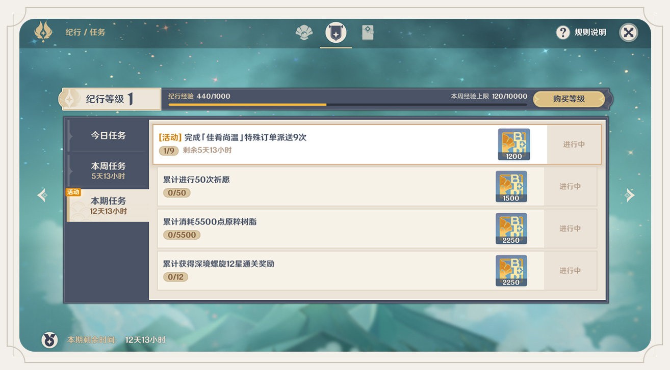 每日4:00订单刷新,奖励也会随之刷新,请旅行者们完成任务后及时领取当日奖励。