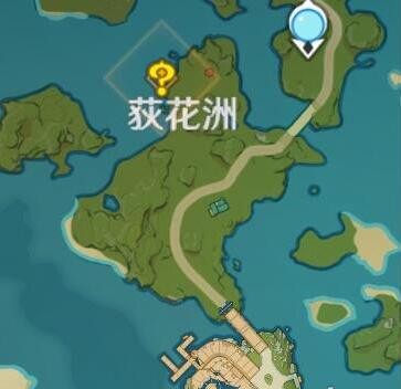 NPC的位置在荻花州这里,我们从荻花州右侧的七天神像这里传送出来。因为不能沾水,所以我们只能从旁边绕到NPC的位置这里,具体的路线如图所示。