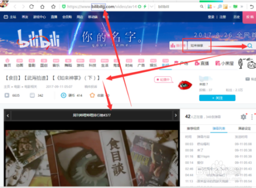 打开B站,找到想要下载的视频,或者在右边的搜索框搜索要找的视频,如图。