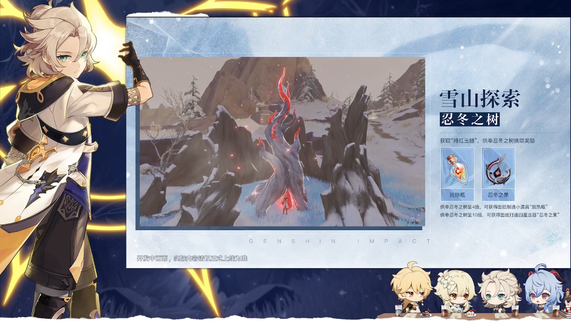 供奉忍冬之树至4级,可获得图纸制造小道具放热瓶,作为热源,在进一步探索雪山的过程中拿来应对极寒环境是非常实用的道具。
