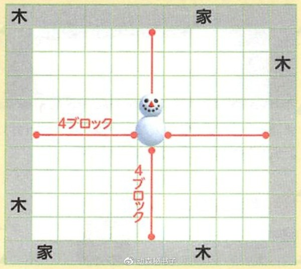 如果一开始掌握不好的话,也可以通过SL**来不断尝试。雪人的存在条件雪人的周围4格需要留出足够的空间,不能有树木和房屋,如果空间不够的话,推到一起的雪球就无法堆成雪人。具体需要空出的空间如下图↓