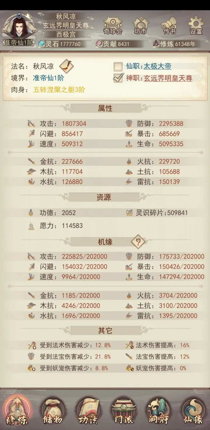 5.79209年达到准帝仙8,冥界法则与鬼门关通缉全毕业,预计3个月后冲击帝仙境界。